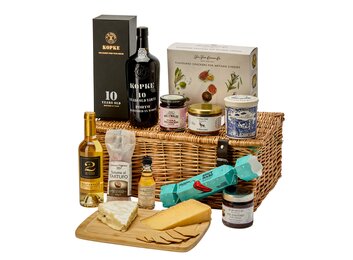 Includes: 10 Year Old Tawny Port, Kopke, 2022 Le 2 de Romer du Hayot, Château Romer du Hayot, Sauternes, T Balvenie double wood 12 year old scotch, Cropswell Bishop Stilton, Ballymaloe Vodka & Cranberry sauce, Lucien Georgelin Onion chutney, Brie with Truffle, TFCC flavoured biscuits selection, Venison pate with cranberries, Gianni Negrini Salame with truffle, Le Gruyere reserve AOP, Whitebox spicy Margarita cocktail Cracker