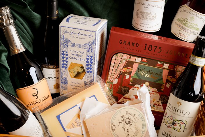 Includes: 2017 Château Margaux, 37.5cl, 2022 Puligny-Montrachet, Domaine Alain Chavy, 37.5cl, 2014 Vendemmia Tardiva, Trebianco, Castello dei Rampolla, 37.5cl, Champagne Billecart-Salmon Rosé, 37.5cl, 2019 Barolo, Ciabot Berton, Az. Agr. Marco Oberto, 37.5cl, 2022 Sancerre, Domaine Aurore Dezat, 37.5cl , The Fine Cheese Co All Butter Wheat Crackers, Comté aged 18 months, Brie with truffles.